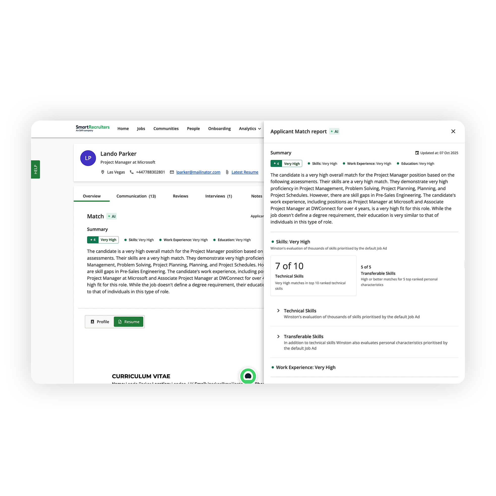 Die Kenntnisse und Qualifikationen der Bewerber:innen werden automatisch mit den Anforderungen abgeglichen. So bekommst du als Recruiter schon eine Vorauswahl.