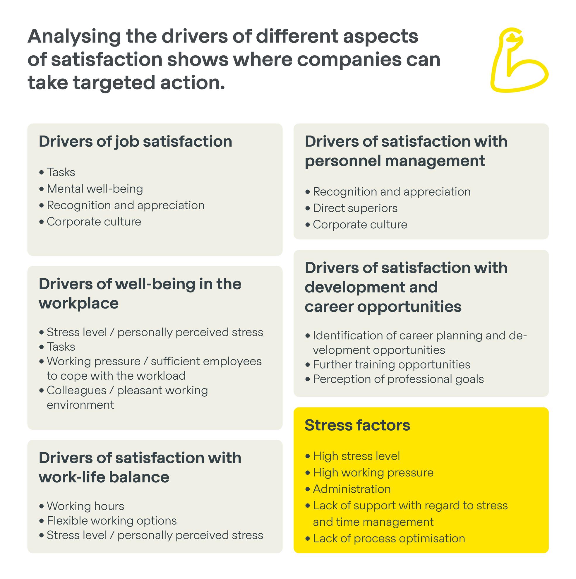 In addition to access to information and digitalisation, satisfaction is also strongly linked to appreciation and development prospects. How can companies make targeted investments in these drivers, even without a large budget?