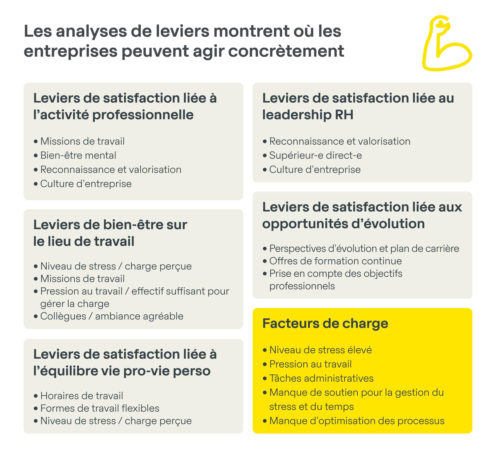 Moins de 40 % des participant-es se disent satisfait-es des opportunités de carrière et de développement. La conséquence est claire : qui ne se sent pas valorisé-e ira voir ailleurs. Ces aspects sont des moteurs mesurables de motivation et de fidélité.